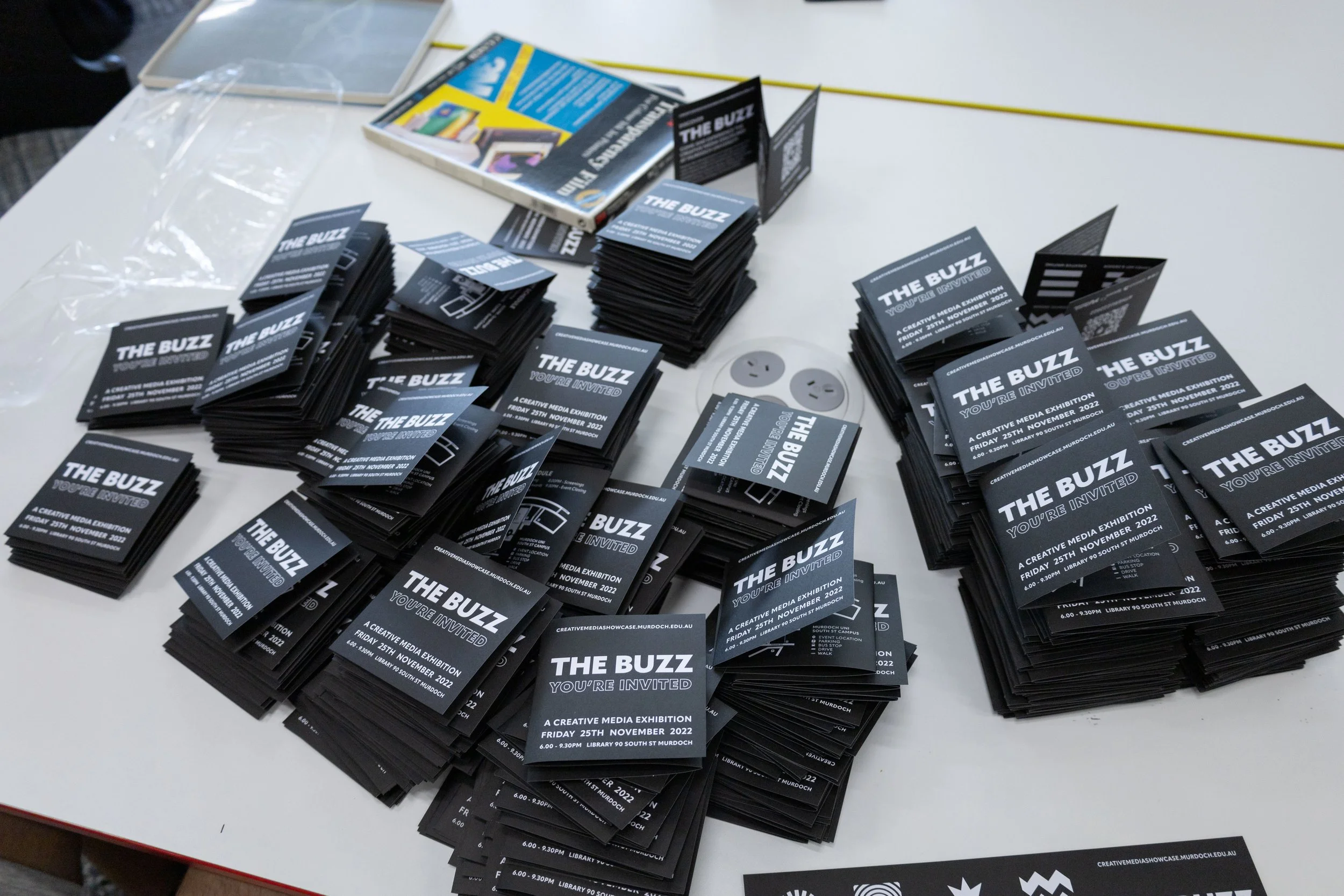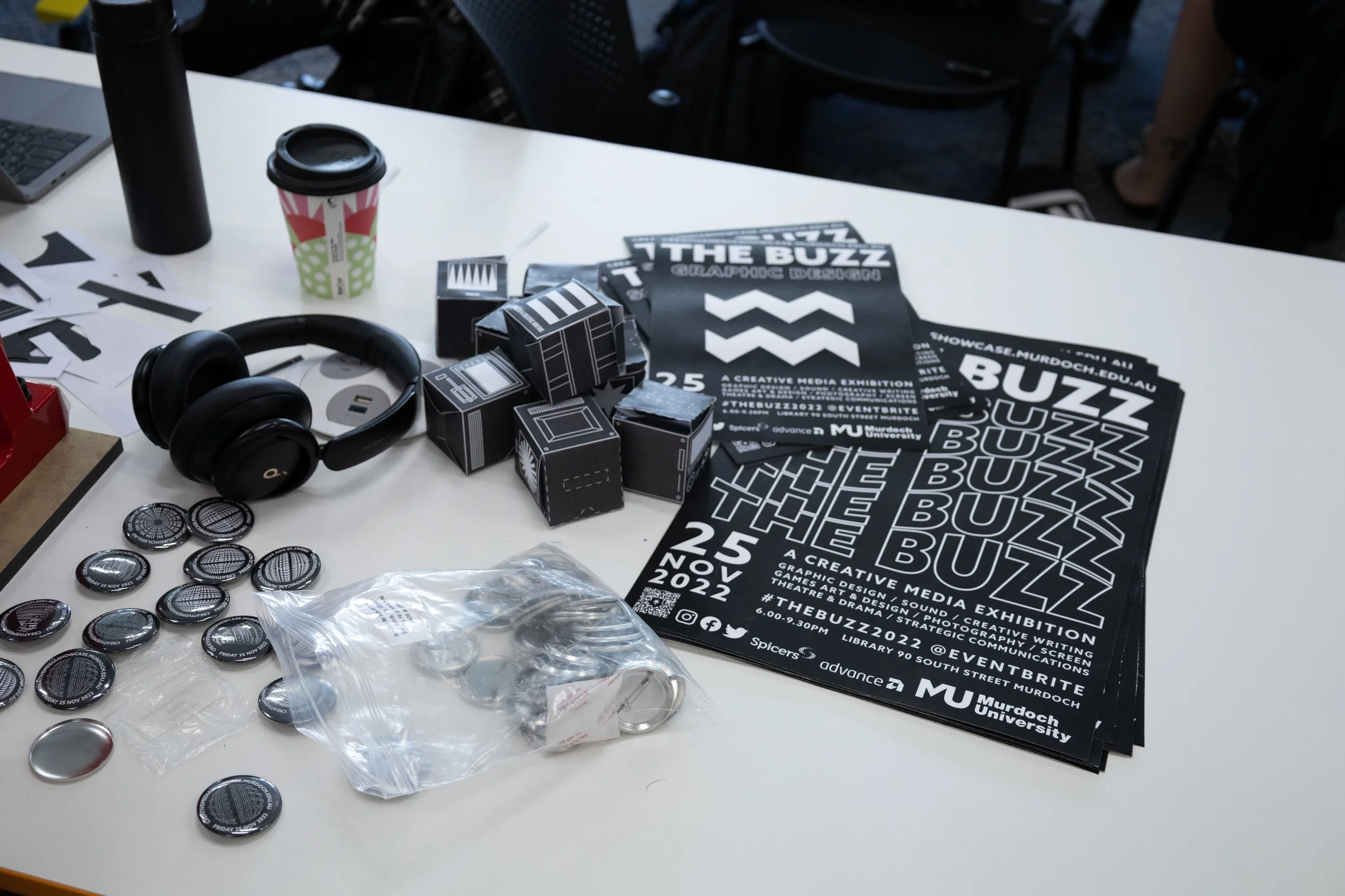 The theme for Murdoch’s Open Showcase (2022) was THE BUZZ, a brand that displays creatives and creative works as passionate, connected, and enthusiastic, emphasising energy, excitement, and stimulation. To achieve this, the brand comprised repetitive sound-adjacent motifs to visualise a 'buzzing' sound and a sense of movement, stimulating feelings of liveliness.