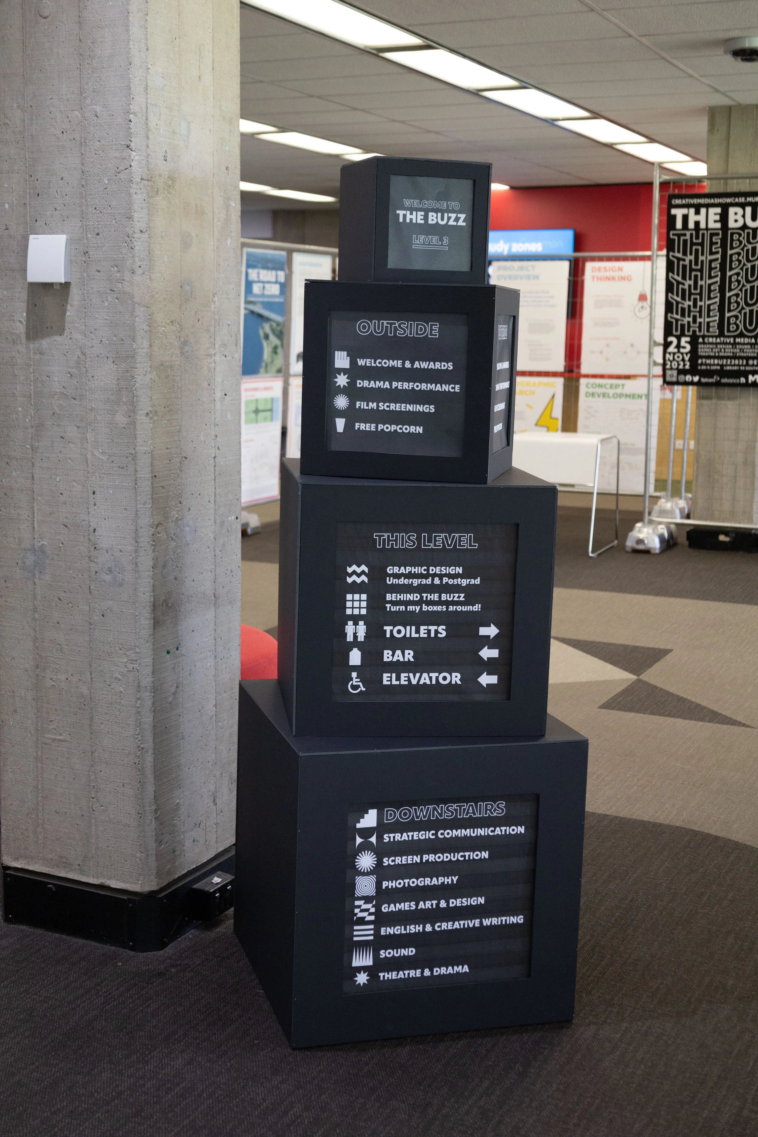 The main outcomes of the THE BUZZ showcase were to give students the opportunity to present their work to an audience, celebrate their success, and network with creative media industry professionals. While the Service Design class benefitted by building technical, team management and communication skills – thereby readying them for service design opportunities in the work field.